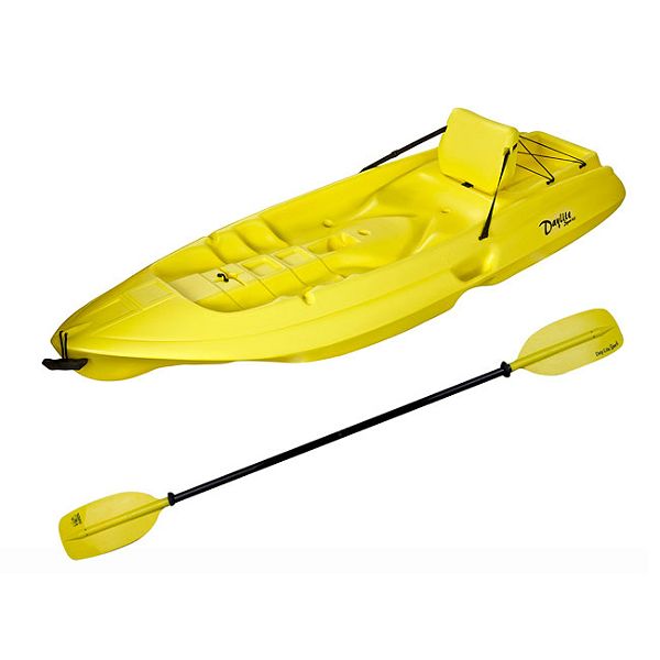 Features include contoured seat with backrest, molded-in child seat, paddle cradle, mast receiver receptacle, multiple foot wells, rear cargo hold, ditty trays, scupper holes to drain cockpit area.