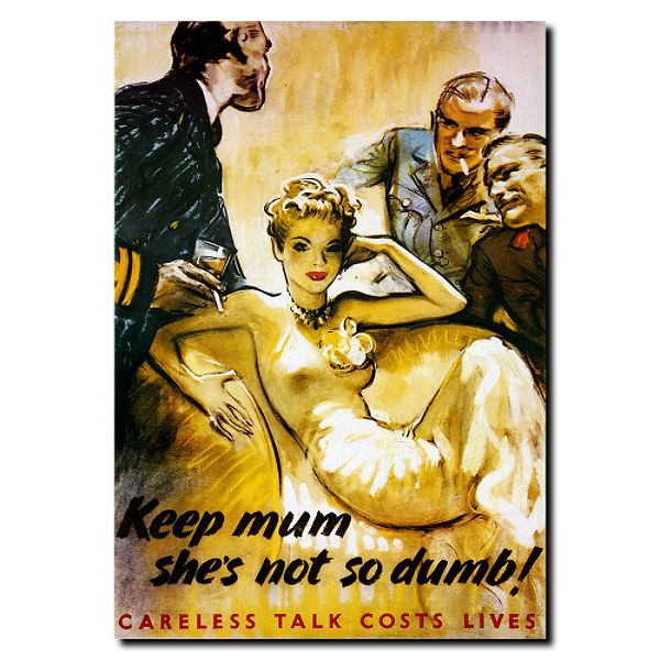Yellow Vintage War Poster "keep mum, she's not so dumb"
