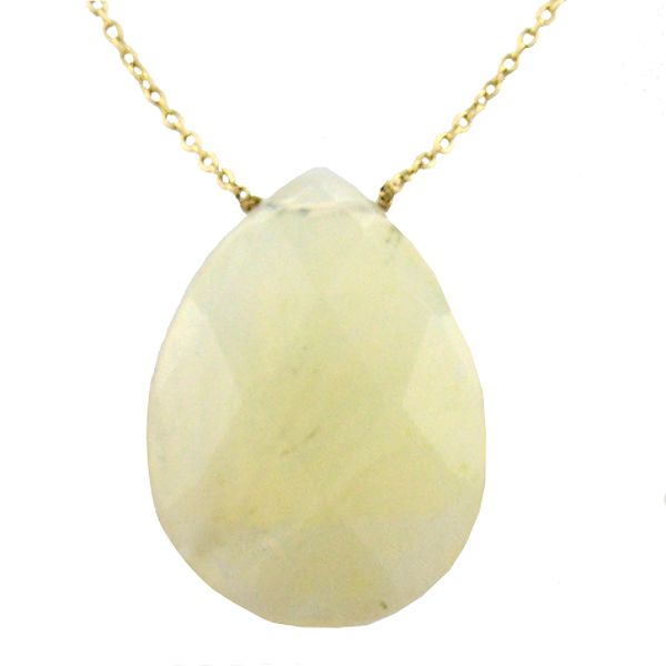 "This piece is the perfect addition to almost any outfit. A Lemon Quartz stone in 30x40mm, drilled into so that a loveley 10k 18" yellow gold festoon chain can be attached. Most colored gemstones are treated to enhance their natural appearance. Some treatments are not permanent and may require special care. See Buying Guide for details"